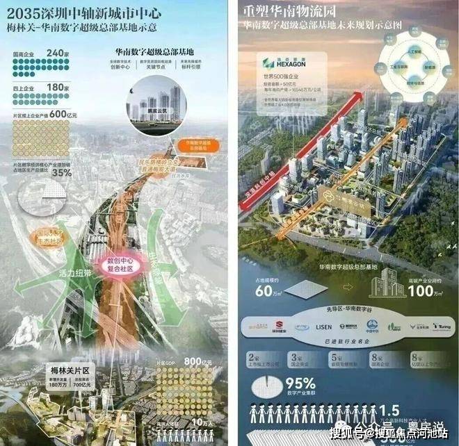 (2)约3公里富贵中轴从场,北接深圳北坐。涵盖人工智能、5G手艺、工业互联网、云计较、智能终端、新能源等高密度数字集群财产,(2)财产中轴|精华5公里,湾区时代的顶层设想港深科创中轴之上,
